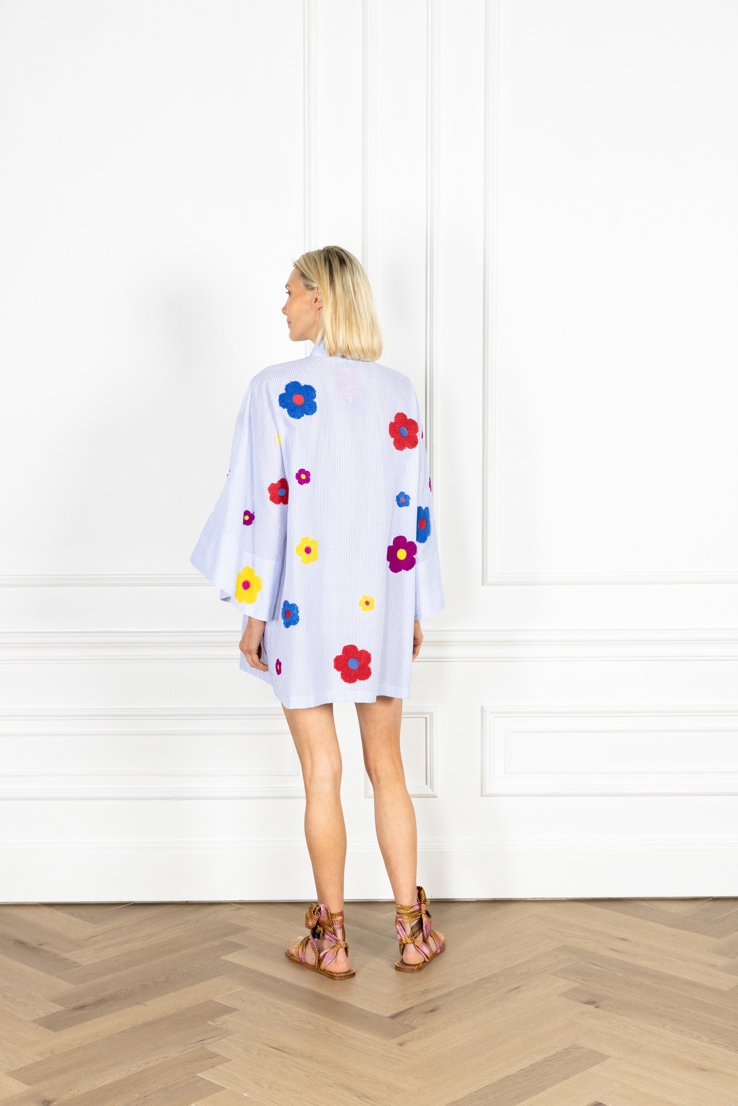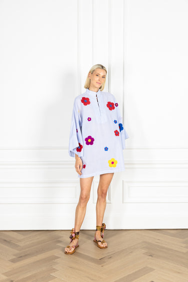 Puff Flower Seersucker Mini Caftan