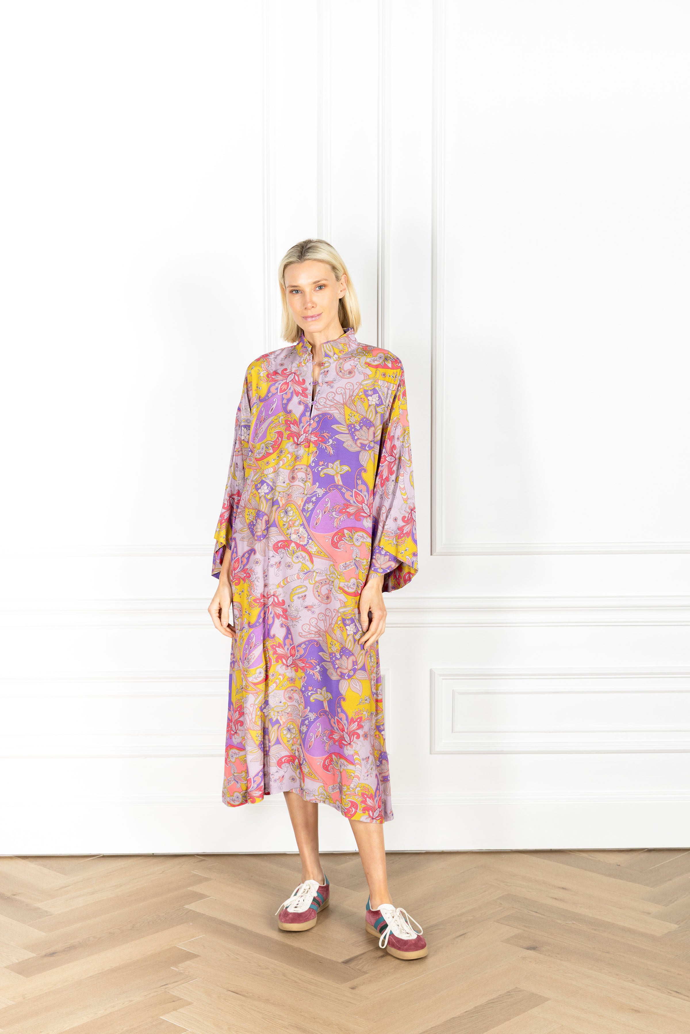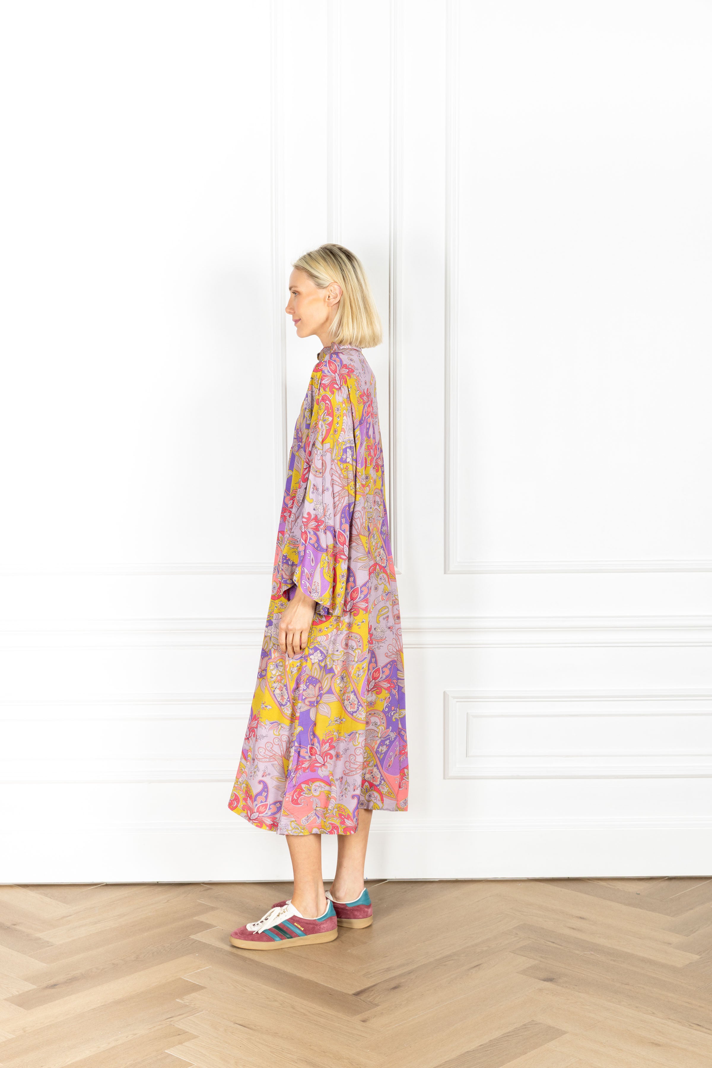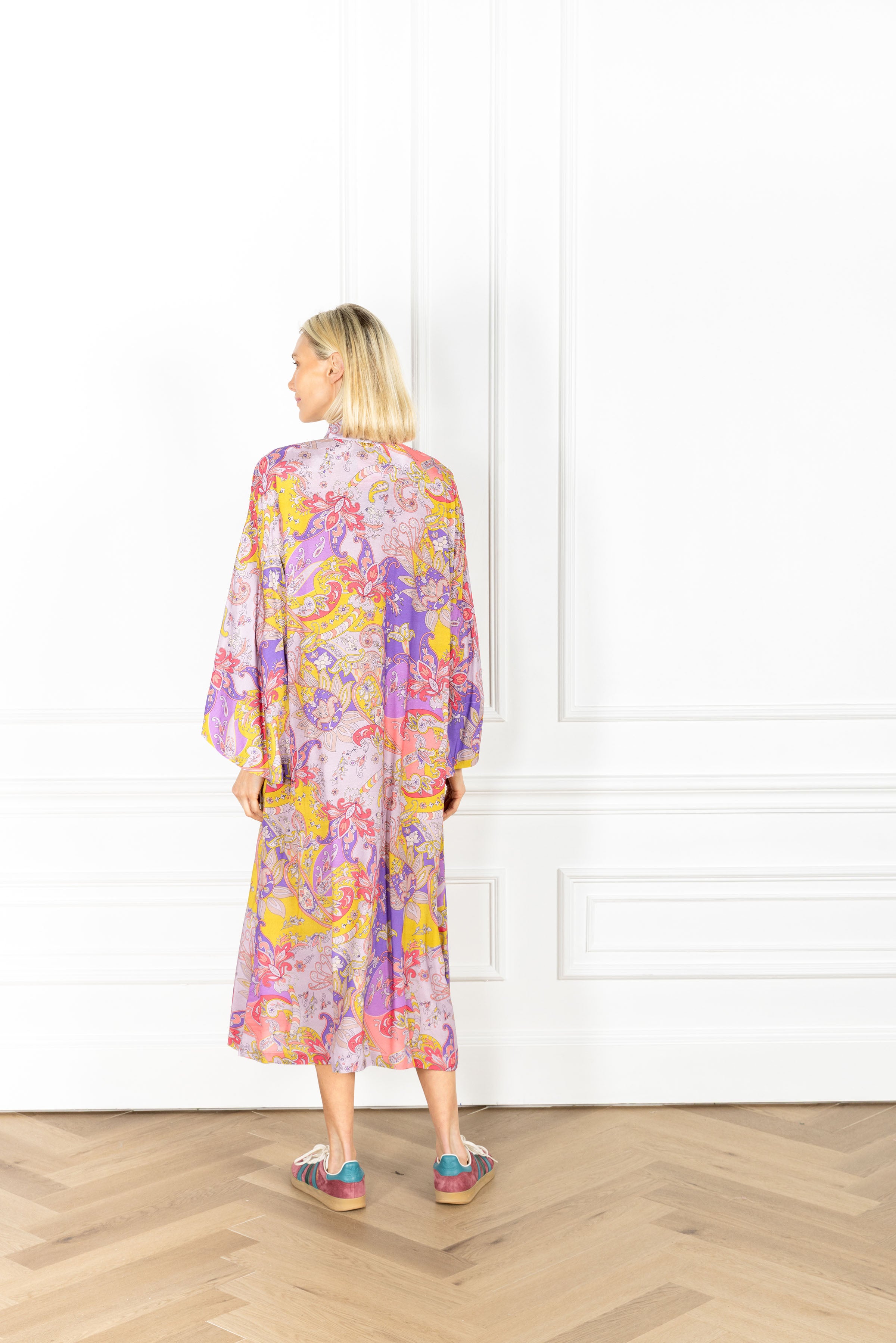 slip on our signature caftan silhouette for an effortless look that feels refined. this caftan features an intricate paisley design composed of stylized florals and curling vines on a linen-blend fabrication.