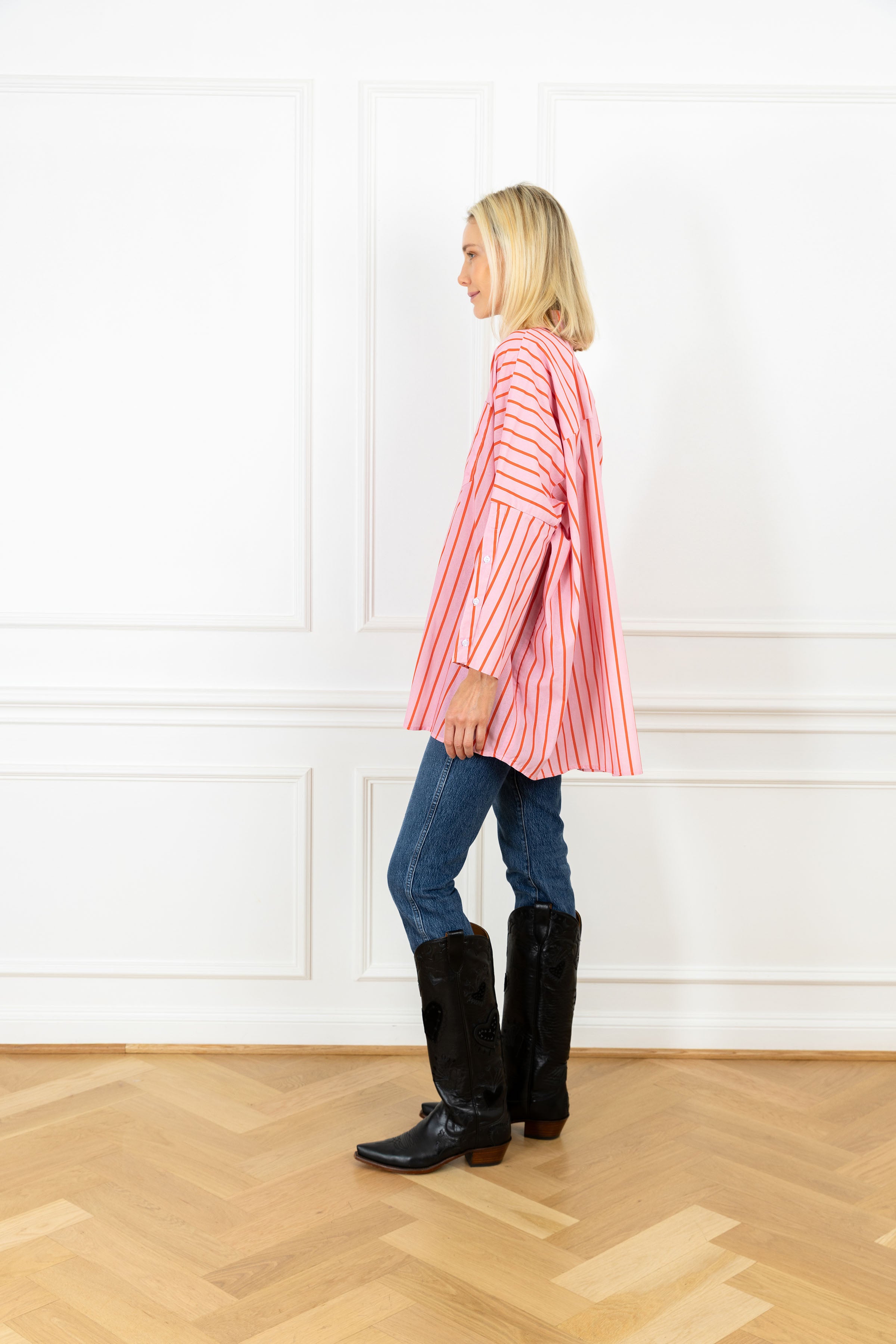 Strawberry Stripes Cotton Boyfriend Shirt