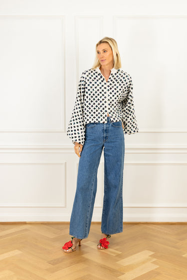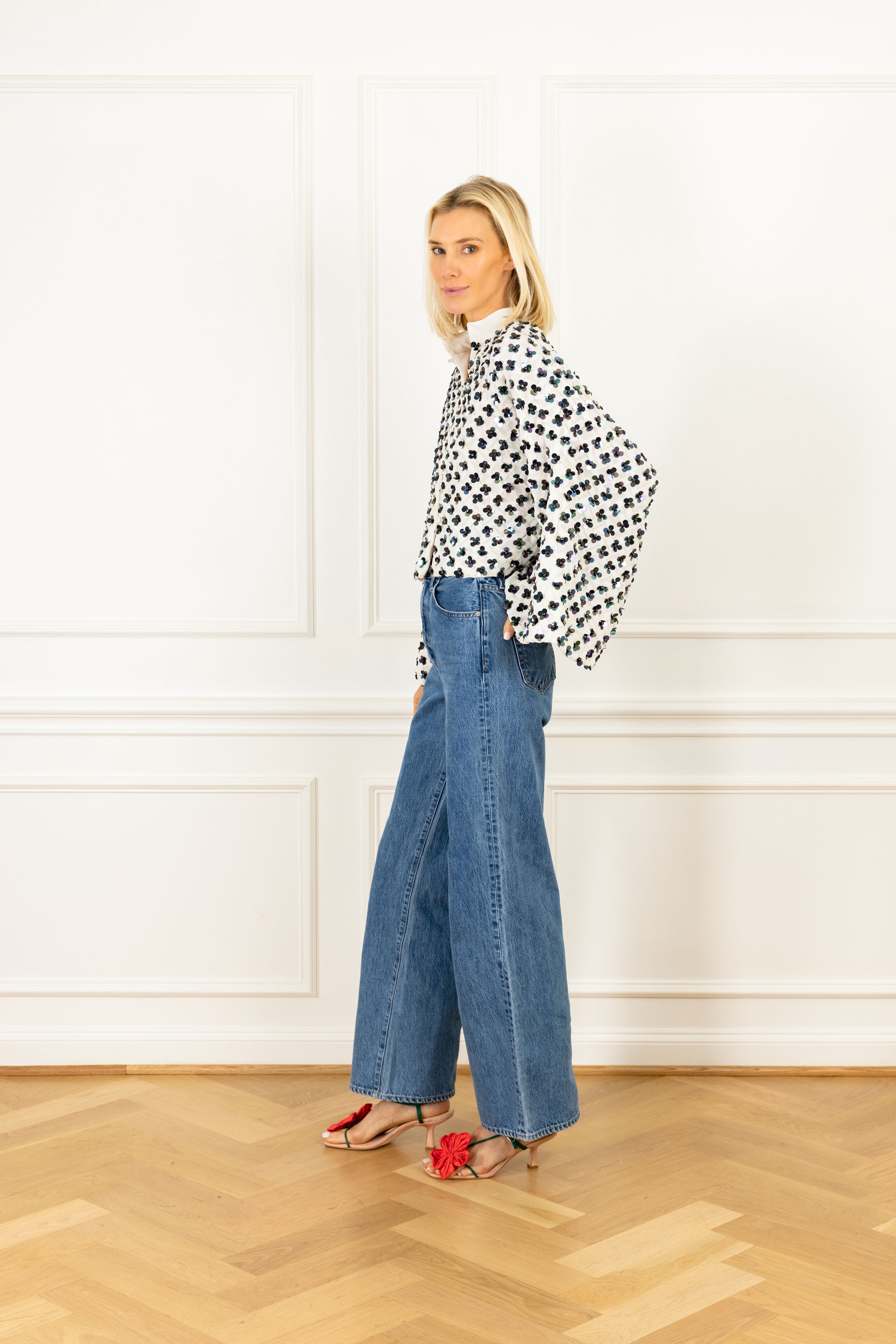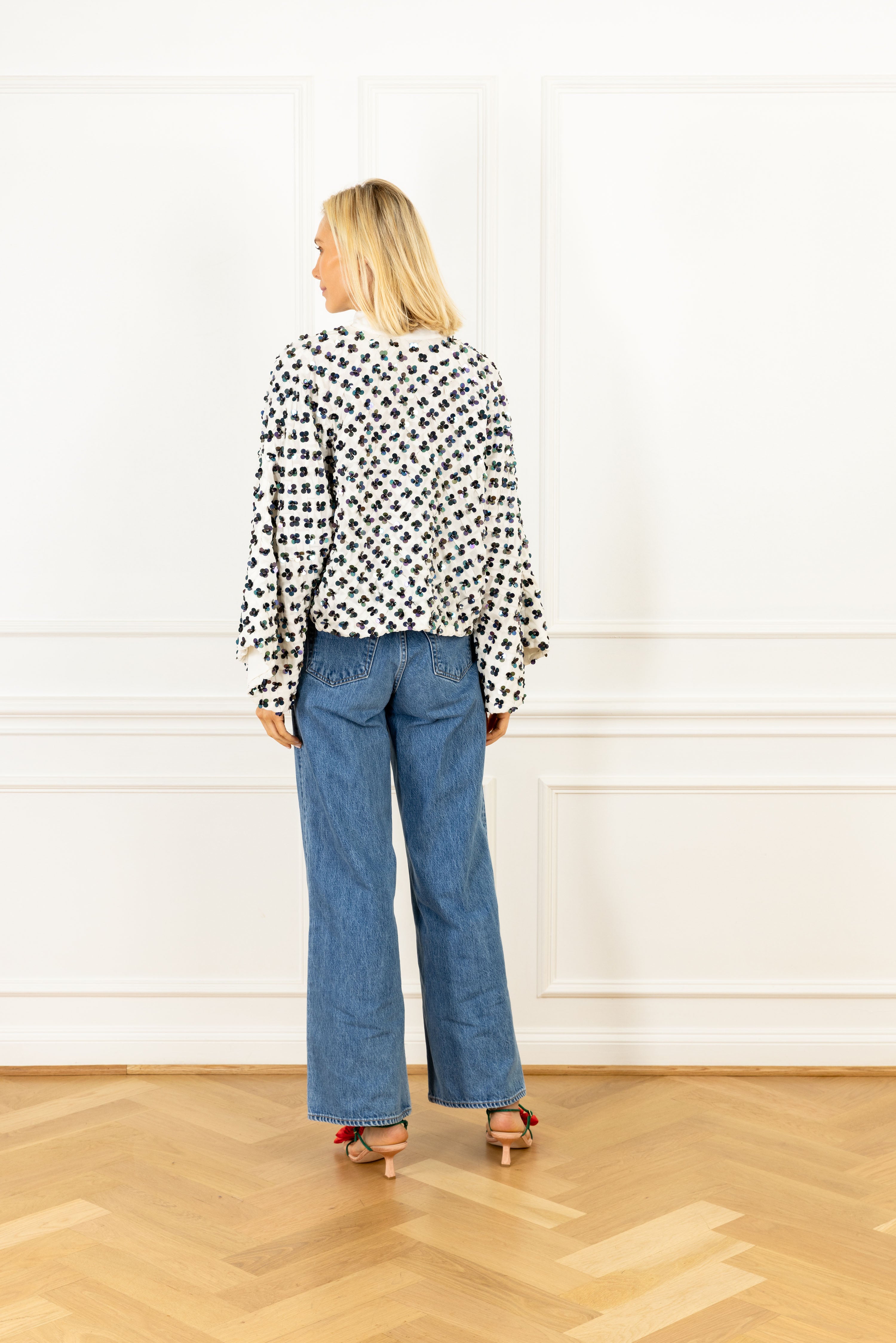 our caftan coat - cropped! the same style you know and love offered in a chic short jacket that can be worn open or closed. this jacket features bangle sequin florals & fabric gathers to create a ruched diamond grid pattern.