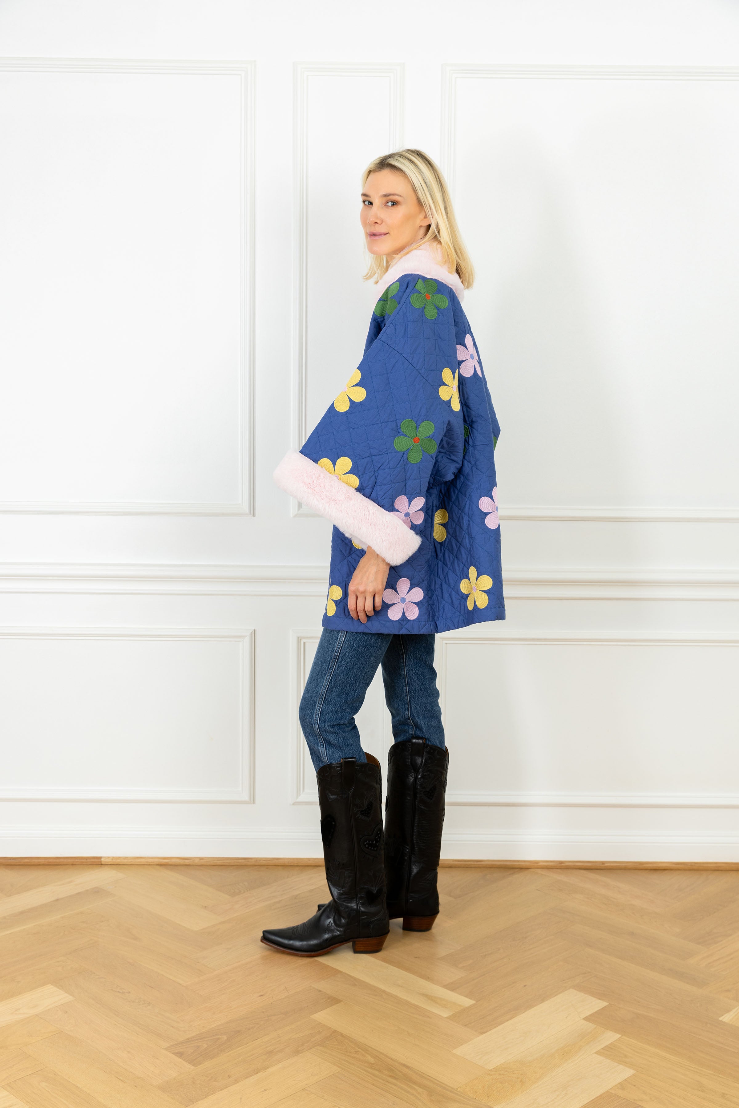Cobalt Quilted Floral Mini Duster