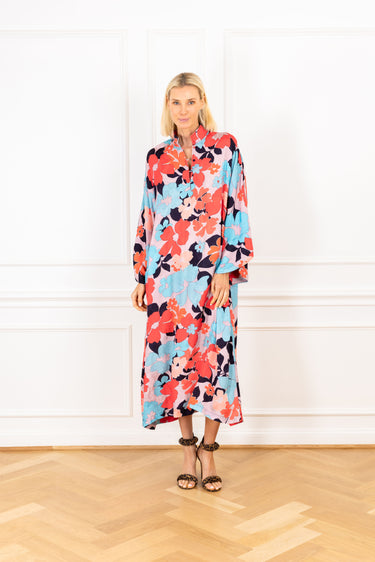 slip on our signature caftan silhouette for an effortless look that feels refined. this caftan features an oversized, abstract floral design with slightly raised floral & leaf motifs.