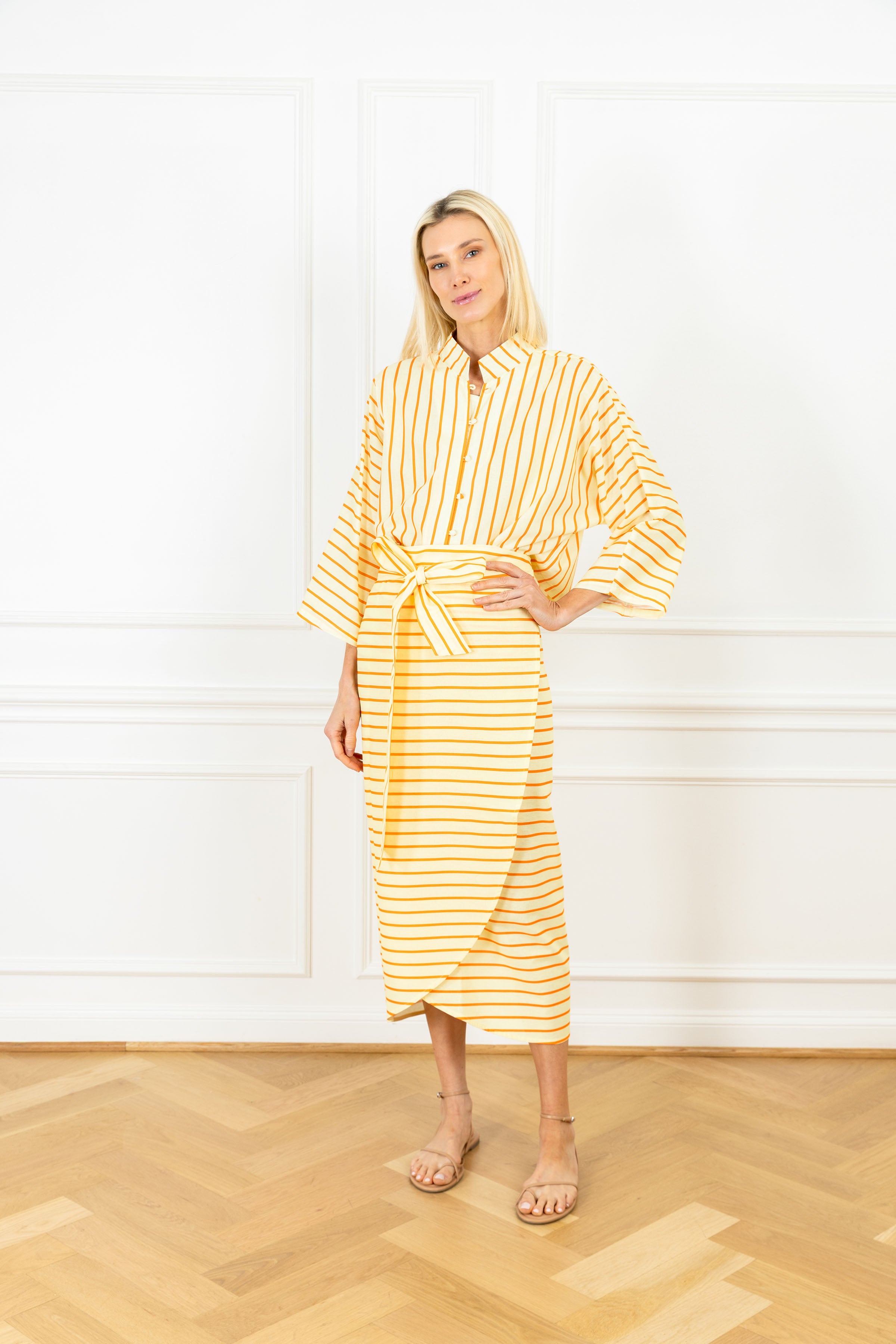 tie on this classic silhouette for an instantly elevated look. this skirt features a horizontal stripe design in vibrant orange and yellow, crafted from breathable 100% cotton.